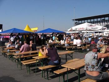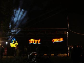 Auf dem Zeltplatz bis zum Morgengrauen jeden Tag die Mega-Rock-Party im Titty-Twister-Zelt: mit Gogo’s und reichlich Bölkstoff. Davon ist an diesem Wochenende übrigens reichlich verzehrt worden, Schätzungen reichen bis zu ca. 150.000 Litern.