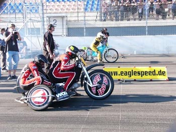 (CIS-intern) – 16 Jahre nach dem legendären Werner-Rennen in Hartenholm hatten die Wernersens am ersten September-Wochenende 2004 zur Riesen-Revanche-Party an den Lausitzring geladen. Und rund 30.000 Werner-Fans folgtem dem Ruf ihres Comic-Königs. Mit einem großen Rahmen-Programm rund um die beiden „großen Rennen“ wurde drei Tage lang gefeiert: Drag-Racing, Stunt-Shows, Werners Eisenpark, Friesenfighter, Burn-out-Weltrekord, Titty Twister-Bar und Live-Musik auf einem riesengroßen imposanten Veranstaltungsgelände.