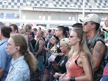 Der Freitag war mit 3 internationalen Top-Acts auf der Musik-Bühne sehr hochkarätig besetzt. Apocalyptica, die 3 Cellisten und ihr Schlagzeuger aus Finnland, präsentierten ihr Metallica-Special. Ist schon irre, was man mit diesen sonst eher klassischen Instrumenten alles machen kann. Motörhead, natürlich der absolute Renner bei den Bikern, die natürlich in Massen da waren, machten ihrem Namen als lauteste Band der Welt alle Ehre. Leider war der Sound absolut unterstes Level, wahrscheinlich tourt der Soundmixer schon seit einem Viertel Jahrhundert mit Lemmy und Co. durch die Lande und hat entsprechende Hörschäden davongetragen. Poser-Hard-Rock im Stile der 70er/80er-Jahre gabs dann von The Darkness. Mit allem was dazugehört: Feuerwerk, hautenge Lederkombi und blonde Rocker Mähne. Wer’s mag !?